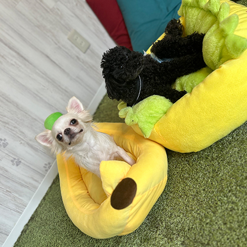 モナマゴ」は、トリミング、犬の保育園、ホテル、室内ドッグランを併設しているため、オーナー様が食事や外出する場合やお仕事に集中されたい時などにも便利です。店内には、犬用アメニティや1Fドッグサロンでも日用品の購入も可能です。