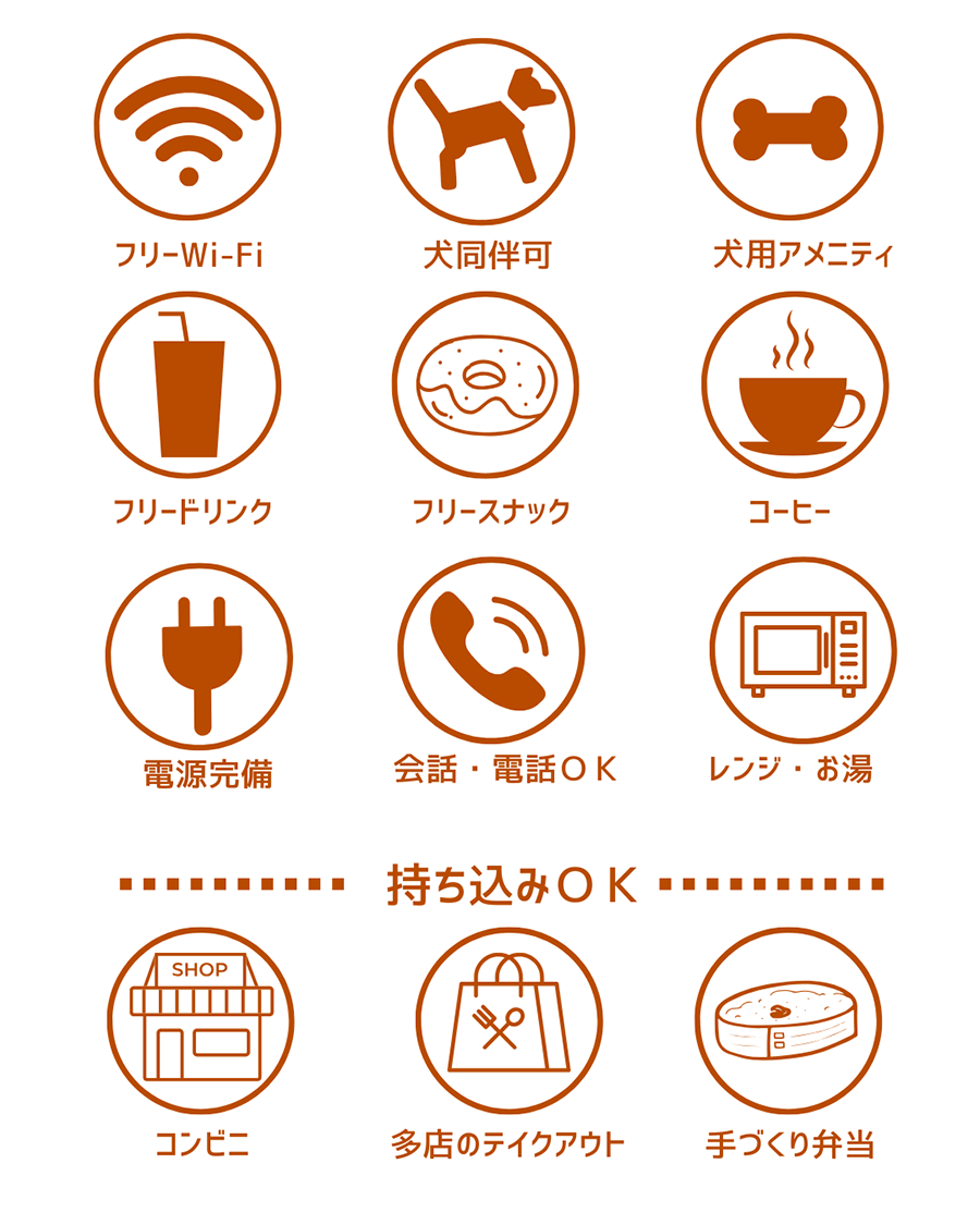 フリードリンク・スナック・wi-fi込み