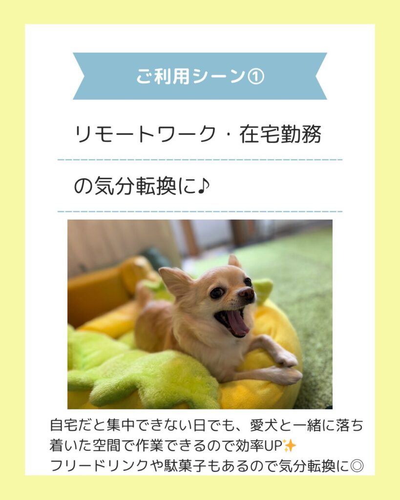 愛犬と一緒に過ごせるワークスペースとしても人気です🌿🐶