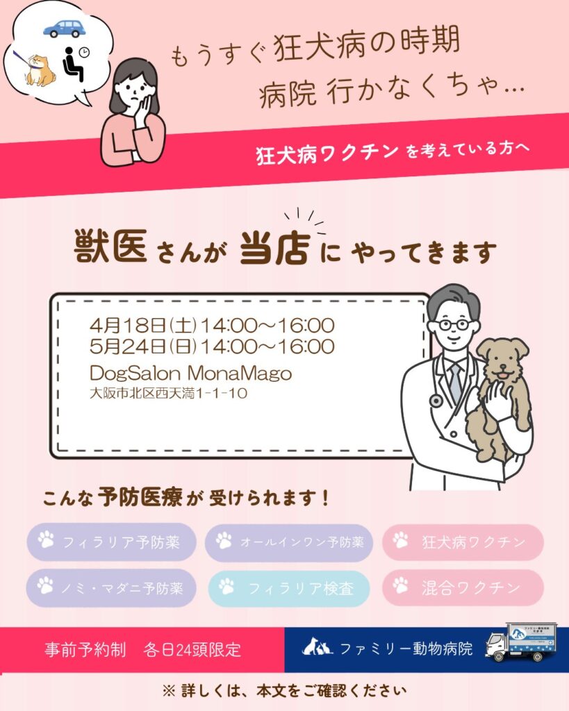 👉 狂犬病ワクチン+フィラリア予防:5,500円〜