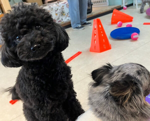 ウチのわんこは人は大好きなのですが、他のわんこは少し仲良くするのが苦手な所があり、少しでも社会性が付けは良いかなと思い、通わせていただきました。